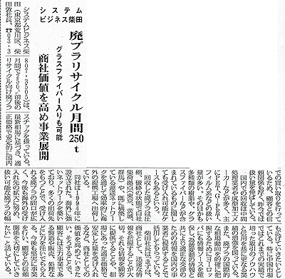 ▼An article about our company appeared in the Recycling Economy Times on